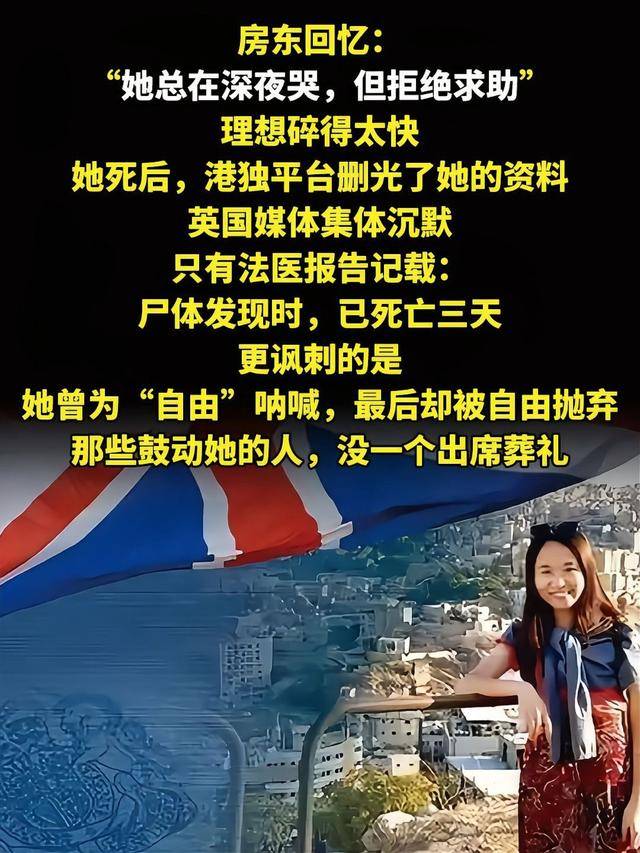 悲剧 何依琼的死,是给所有年轻人的清醒剂,她本可以凭学历和能力为国家做事,却因错误认知,从港大优等生变成“乱港”分子,最终在英国阁楼自尽。 那些和她一样持BNO逃英的港人,如今做体力活、睡街头,印证了“西方天堂”是骗局,英国要的从不是“人才”,而是能搅乱香港的棋子,棋子没用了,自然被抛弃。