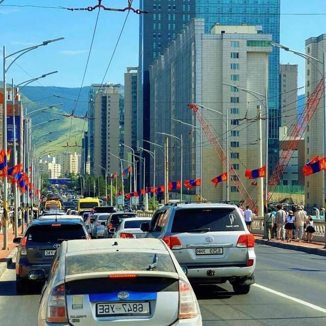 公交车开进城,车流堵得动弹不得。乌兰巴托的早晚高峰比北京还吓人,但这里的车五花八门,左边驾驶的、右边驾驶的混在一起,红绿灯形同虚设。司机一边开车一边打电话,副驾上还堆着蔬菜和小孩。我问这不危险吗?当地人笑着说,习惯了就好。