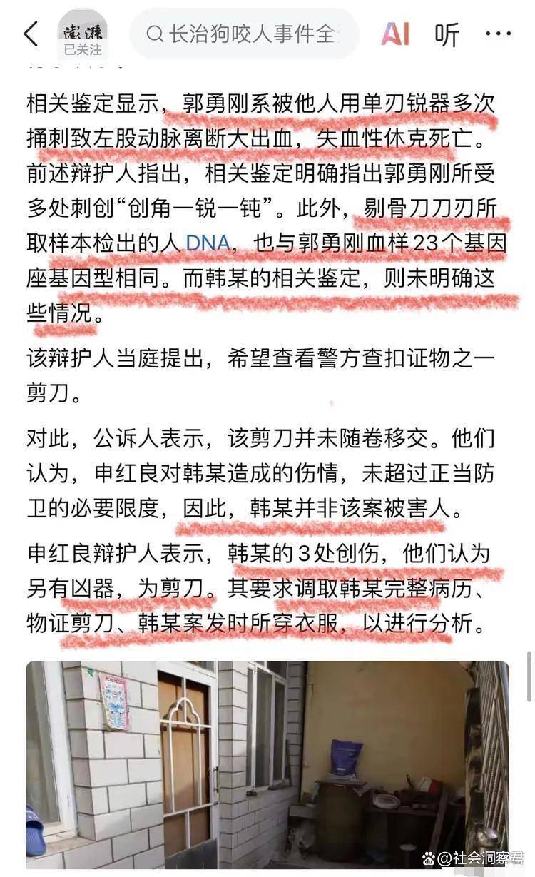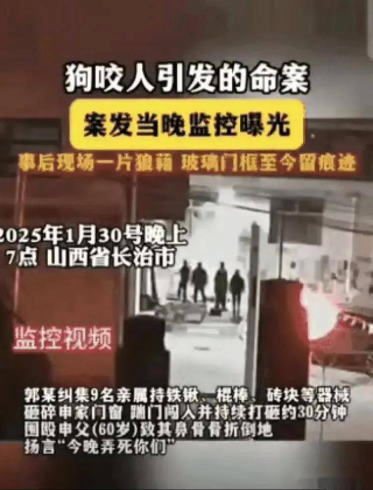 实锤了!官方媒体《法治进行时》独家揭露:山西长治发生的那起“狗伤人、人杀狗进而演变成人杀人”的案件当晚,郭家一行四人来到申家门外,其中三人动手,持续对申家的窗户玻璃进行打砸,致使玻璃破碎! 此前,郭家死者的妹妹面对媒体哭诉的说,声称网上所说的打砸情况并不存在,他们只是前往申家,双方产生了争执,结果她的哥哥就被申家人用刀刺死了。 虽然监控画面没有声音,但画面中几个人的动作,已然能说明一切!他们砸了很长时间,也没见申家有人出来。 从公开的视频中能够明显看出,郭家是四人主动找上门去,三人动手砸了玻璃,这明显是主动挑衅的行为。申家显然是不想把事情闹大,所以紧闭大门,但面对如此气势汹汹的挑衅,申家也没有到屋外来制止。郭家却步步紧逼,最终闯入申家屋内,让事态进一步升级,最终酿成了悲剧。 所以说,猖狂之人必有可恨之处,最终结局也会很悲惨。郭家人的嚣张,就注定了他们会有这样的悲剧结局。看看郭家死者妹妹还能如何狡辩,视频摆在眼前,律师也帮不了他们。 监控能拍到这段砸门的画面,是因为邻居家的监控安装在门口。不过,仅这些就足以证明:真是“法网恢恢,疏而不漏”啊。 无论身处何地,都不要做违法乱纪的事。如今,不管是城市还是农村,监控设备都已经十分普及。可以说,违法乱纪之人再也没有藏身之地了。 值得一提的是,郭的妻子居然还是一名“官”。申家是从籍贯地、隔壁的平顺县迁过来的,这些年来一直经营着乳胶漆、腻子粉等生意。郭家从事全屋定制生意,郭的妻子赵某晖是潞城区的政协委员。 相关鉴定显示,郭勇刚系被他⼈⽤单刃锐器多次捅刺致左股动脉离断大出血,失血性休克死亡。前述辩护人指出,相关鉴定明确指出郭勇刚所受多处刺创“创角一锐一钝”。此外,剔骨刀刀刃所取样本检出的人DNA,也与郭勇刚血样23个基因座基因型相同。而韩某的相关鉴定,则未明确这些情况。