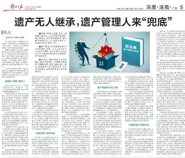 | 老人离世后 没立遗嘱、也没有继承人 留下价值数百万元的遗产 谁来管理? 今年7月 有媒体曾报道过这样一个案例 2021年,金山石化七村一位居民不幸在家中死亡,该居民是一个孤儿,没有配偶和其他亲属,也没有留下遗嘱和遗赠抚养协议。 该居民去世之后,物业公司和居委会一起办理了丧事,并在社区民警的见证下整理了他的遗物,丧葬费、清洁费等由物业公司垫付。经核实,死者遗产除了房屋以及屋内财产外,他的账户上还有一些余额。物业公司希望从遗产中扣除他们垫付的费用,但居委会第一次碰到这样的问题,不知如何处理。 近年来 类似情形时有发生 无人继承遗产 谁来管理? 作为遗产管理的“兜底主体” 民政部门如何履行遗产管理人职责? 记者了解到 为贯彻落实 《中华人民共和国民法典》有关规定 进一步规范本市民政部门 依法履行遗产管理人职责 妥善处置无人继承又无人受遗赠遗产 (以下称“无人继承遗产”) 保障遗产利害关系人的合法权益 上海市政府办公厅近日印发 《关于民政部门履行遗产管理人职责以及处置无人继承遗产的若干意见》 如何确定民政部门的遗产管理人身份? 民政部门需要履行哪些职责? 无人继承遗产最终会如何处理? 这些实践操作的难点均有了答案 如何确定民政部门的遗产管理人身份? 《民法典》第1145条规定“继承开始后,没有继承人或者继承人均放弃继承的,由被继承人生前住所地的民政部门或者村民委员会担任遗产管理人”,这一规定确立了民政部门在特定情形下担任遗产管理人的新职能。 记者了解到,《民法典》实施至今,国家层面尚未出台关于民政部门履行遗产管理人职责的配套细则;实践中,上海各区已出现多个法院判决民政部门担任遗产管理人的案例。为依法执行法院判决,规范本市民政部门履行遗产管理人职责,妥善处置无人继承又无人受遗赠遗产(以下称“无人继承遗产”),保障遗产利害关系人的合法权益,市政府办公厅根据《民法典》制定《若干意见》。 根据《若干意见》,继承开始后,没有继承人或者继承人均放弃继承的,由被继承人生前住所地的民政部门或者村民委员会担任遗产管理人。其中被继承人为农村集体经济组织成员的,由村民委员会担任;被继承人为非农村集体经济组织成员的,由民政部门担任。 利害关系人要求民政部门担任遗产管理人的,可以根据上海市高级人民法院上海市民政局印发的《关于民事诉讼中民政部门担任遗产管理人的实施意见》(沪高法〔2023〕240号),向人民法院申请指定民政部门担任遗产管理人,或者在诉讼中申请追加民政部门担任遗产管理人。担任遗产管理人的民政部门为被继承人生前住所地的区级民政部门。 人民法院判决指定或者同意追加民政部门担任遗产管理人的,民政部门应当严格执行法院判决,秉持“勤勉、审慎、依法、公开”的原则,尽职履行遗产管理人职责。 民政部门担任遗产管理人 需履行哪些职责? 根据《若干意见》,各区民政部门担任遗产管理人,应当履行清理遗产并制作遗产清单,采取必要措施防止遗产毁损、灭失,处理被继承人的债权债务,实施与管理遗产有关的其他必要行为等职责。 民政部门担任遗产管理人,如何查询被继承人遗产?根据《若干意见》,各区民政部门履行遗产管理人职责,可以委托上海市居民经济状况核对中心依法查询被继承人生前的财产信息,由该中心开展核查并出具报告,作为各区民政部门制作遗产清单的重要参考。 民政部门是否可以委托第三方处理遗产管理人工作事务?根据《若干意见》,各区民政部门应当明确专门人员负责遗产管理人工作,可以就履职过程中的法律、公证、审计、评估等专业事务委托律师事务所、公证机构、会计师事务所、评估机构等专业机构。 市级民政部门建立受托处理遗产管理人专业事务机构目录,并实行动态管理,具体办法由市级民政部门另行制定。 民政部门履行遗产管理人职责,是否会对被继承人的遗产实行专户管理?各区民政部门设置遗产管理人资金专户,用于在履职过程中与被继承人相关的债权债务等资金往来结算。 无人继承遗产如何处理 最终无人继承的遗产,民政部门会如何处理?根据《若干意见》,各区民政部门履行遗产管理人职责,依法处理被继承人债权债务后,仍有剩余遗产的,可以向人民法院提起无主财产确认之诉,经人民法院判决认定剩余遗产无主并收归国家所有的,由区级民政部门申请作出判决的人民法院执行。 收归国有的无人继承遗产,应当主要用于扶贫济困、扶老救孤、恤病助残以及教、科、文、卫等公益事业。 民政部门履行遗产管理人职责,相关费用如何保障?根据《若干意见》,各区民政部门在查询、管理、处置遗产等过程中产生的费用(包括但不限于为防止遗产毁损、灭失支付的费用、为清理被继承人债权债务产生的委托第三方专业机构的费用等),从被继承人遗产中优先列支,不足部分由同级财政保障。各级民政部门履行遗产管理人职责所需的日常工作经费列入同级财政预算,全额予以保障。 民政部门履行遗产管理人职责,相关单位如何配合?按照规定,公安、司法、财政、人力资源社会保障、规划资源、住房城乡建设管理、市场监管、医保、知识产权、房屋管理、金融管理、税务、工会等部门、单位按照各自职责,建立与民政部门履行遗产管理人