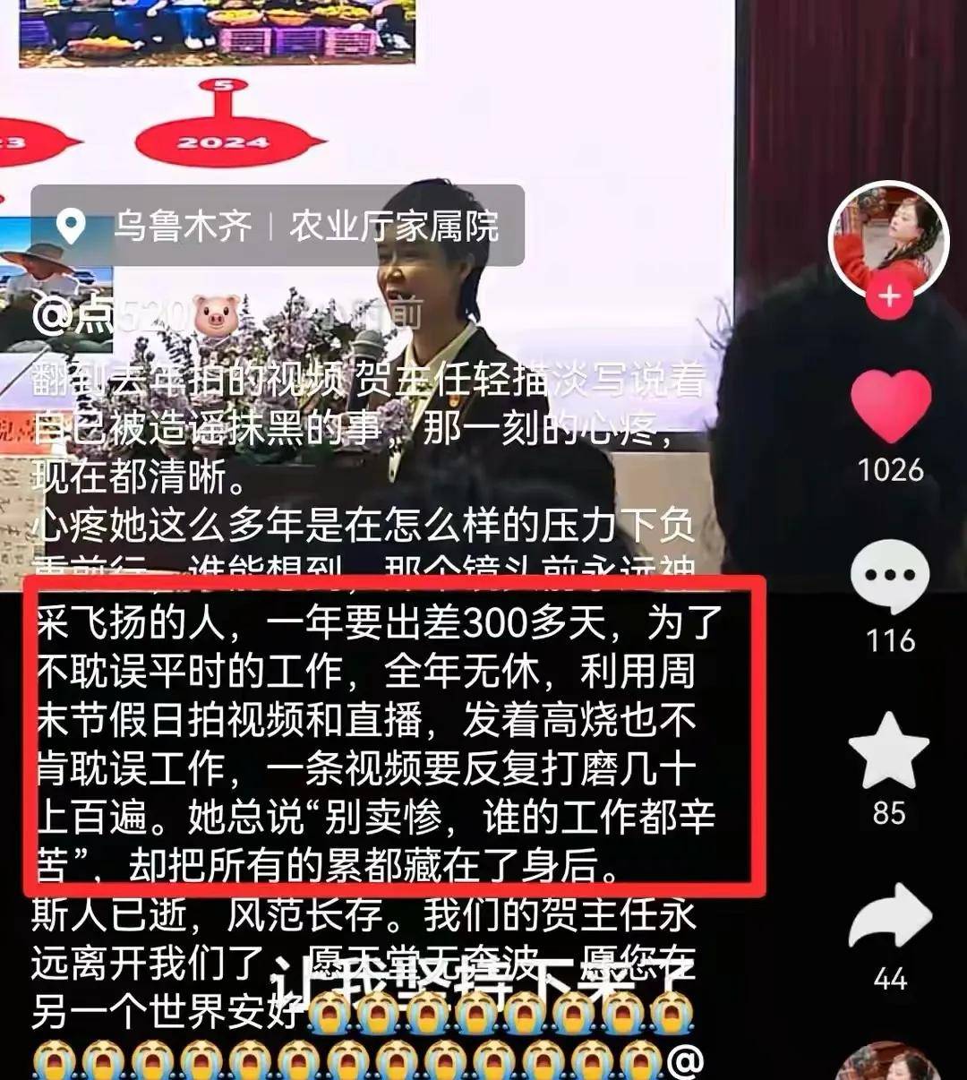 图片来源于网络 她手机里存了好多照片,都是半夜还在办公室写材料,或者蹲在地头看玉米长得咋样。她老公说过她太拼,她笑说停不下来,看到老乡卖不出东西,心里过不去。母亲以前警告她:再骑马就不准回家。可她还是骑了,这一回,真没回来。 贺娇龙是全国三八红旗手,也是2022年度三农人物。调到自治区农产品品牌中心后,带着四百多家企业做电商改革,帮两千多人就业,上万户农民增收。很多牧民现在都能用手机卖货,说都是贺主任教的。