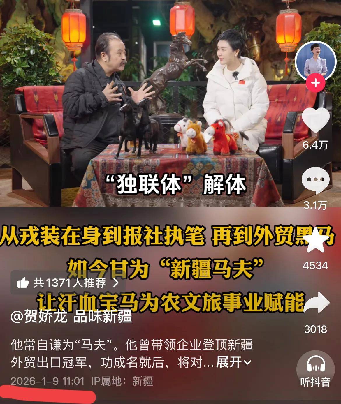 图片来源于网络 这些年贺娇龙错过了太多家庭聚会。孩子长大,她在忙;父母生病,她在外。但她总说,这片土地养了她,就得回报。她是援疆知青的女儿,生在这里,长在这里,心也扎在这儿。 现在“品味新疆”牌子打出去了,直播间越来越热闹,可那个坐在最前面的人不在了。团队同事说,她的工位还留着那件红斗篷,谁也不敢动。